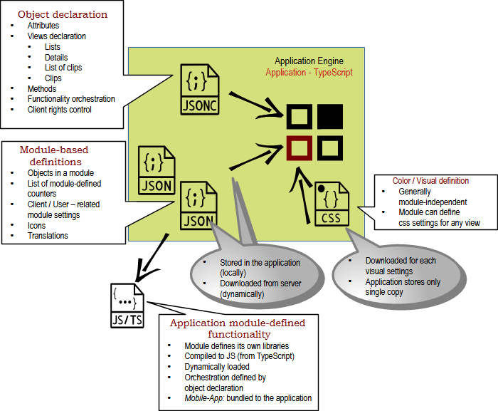 Application is the framework that loads object from the object definition in the JSON document.